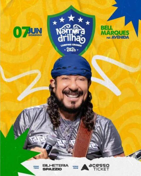 O São João de Campina Grande começa em grande estilo no dia 07 de junho com a tradicional Namoradrilha, um dos eventos mais aguardados da programação junina. O bloco de rua, que já é tradição há mais de 15 anos, contará com o comando de Bell Marques no trio elétrico.